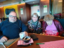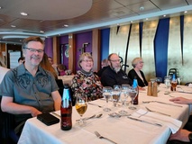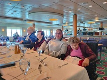 Yhdistyksen jäsenistöä päiväristeilyllä Tallinnassa, 21.4.2023. (kuvat Kirsi Kant)